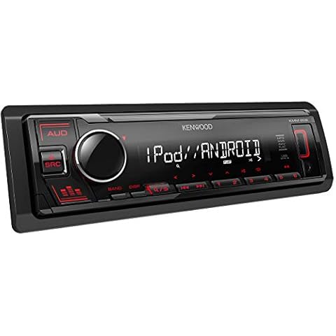KENWOOD KMM-205 Receptor Multimedia para Coche 1 DIN | Radio para Coche con entradas Frontales AUX Jack 3.5. y USB Compatibles con Dispositivos Apple y Android. Sintonizador de Radio RDS.