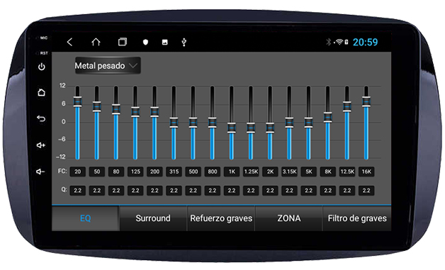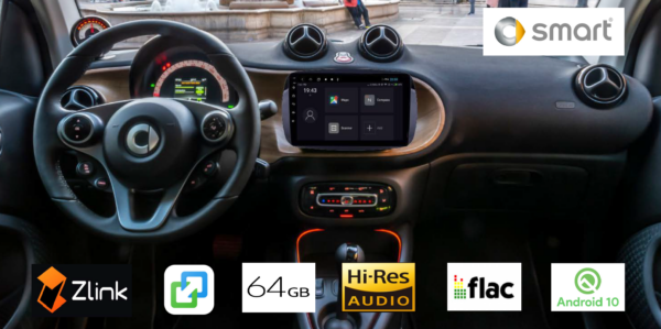 Radio Multimedia específico para BENZ SMART 2016 con display Táctil Capacitivo 9”, Gps , mirroring (Espejo), ZLink Carplay Android Auto y Procesador de sonido, control mando volante y control climatizador y funciones. procesador