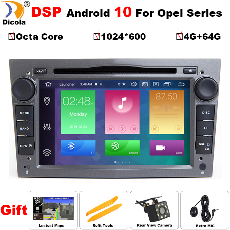 ¡Android puro 10!¡ DSP ! 7 Pulgadas Reproductor de DVD para coche de la serie Opel Con Control de volante +Octa Core CPU + 4GB de RAM + 64GB ROM + 1024*600 IPS Pantalla + pantalla capacitiva + Wifi +3G/4G(3G/4G USB Dongle opcional)