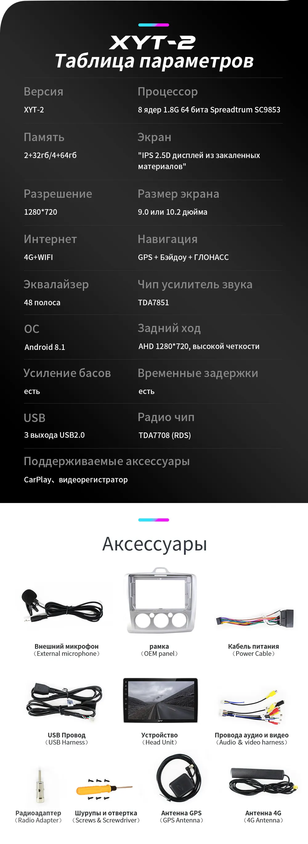 Ford Focus 2 Mk 2 Pantalla Gps Multimedia Android 8.1 Carplay Android auto