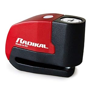 RADIKAL RK6 Candado Moto Disco Alarma 120db, Boton ON, Warning Avisador, Módulo Remplazable Impermeable, Pila CR2 Larga Duración, Antirrobo Pinza Freno Universal para Motos Scooter Bicicleta Patinete