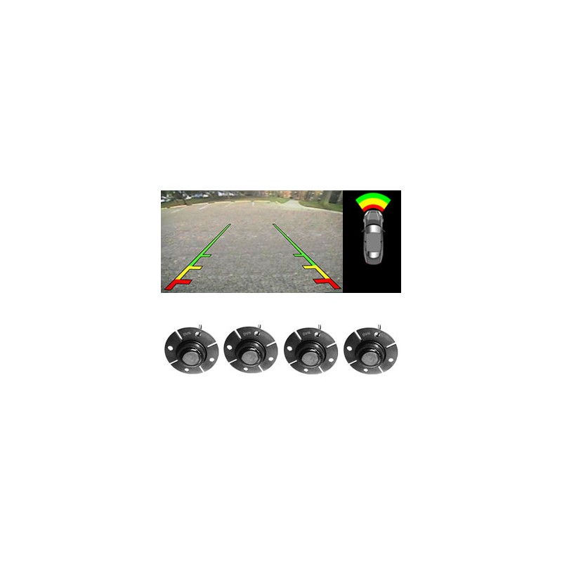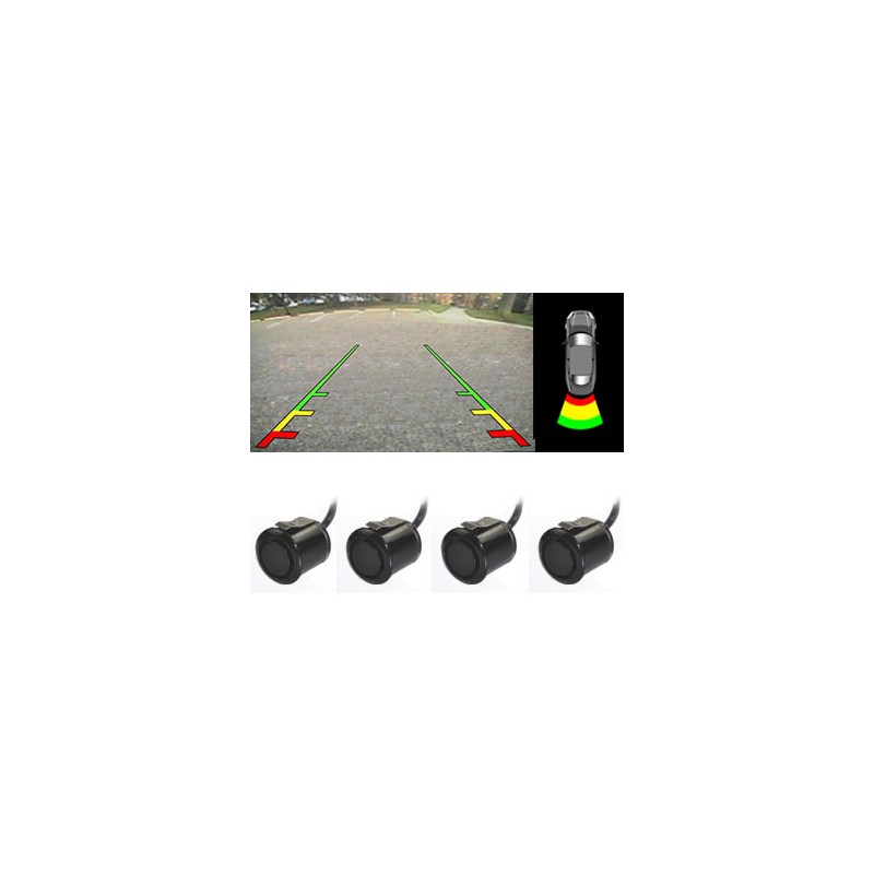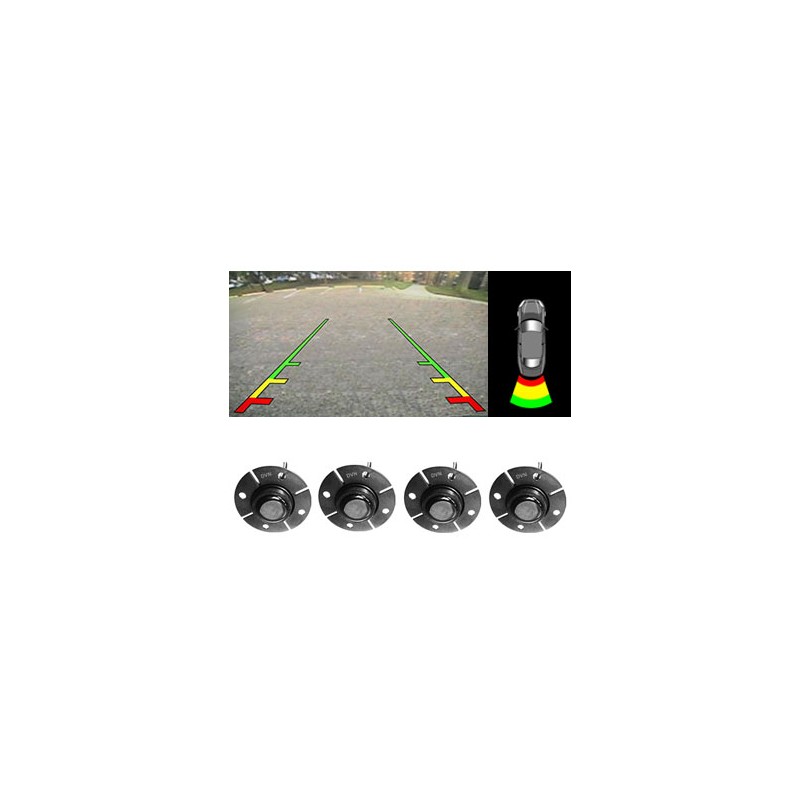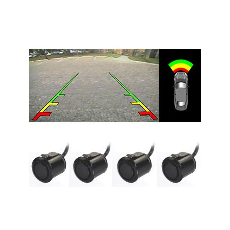 Interface de ayuda al aparcamiento que se compone de una centralita de control + sensores parking así como dos entradas para cámaras de aparcamiento (delantera y trasera -opcionales).